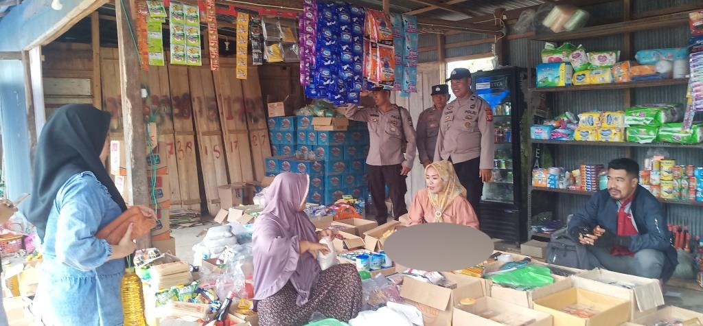 Iptu Tajudin bersama kanit Samapta Polsek Tellu Siattinge, Aiptu Soedjadi, mengunjungi satu per satu pedagang yang sedang berjualan di pasar.