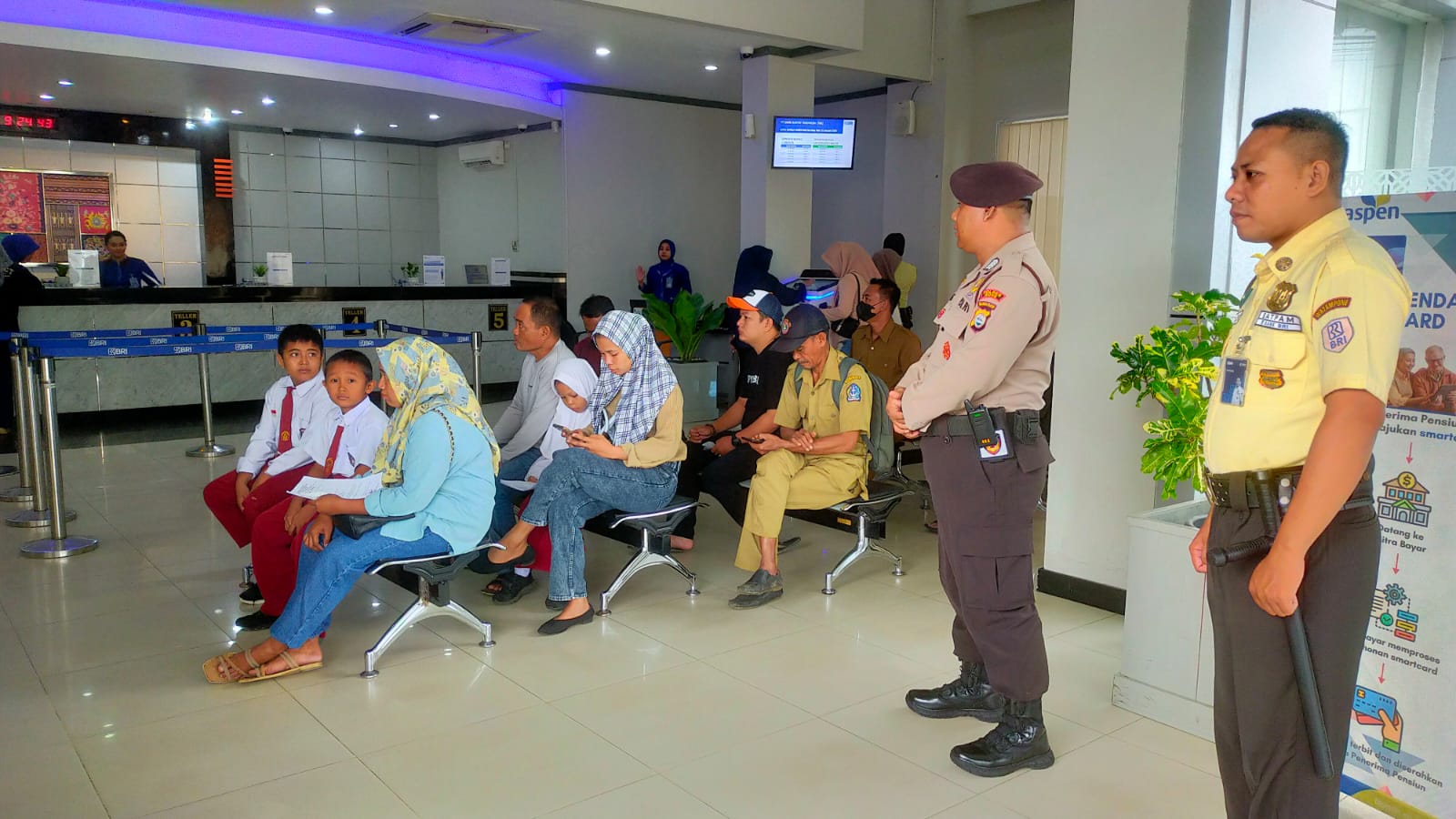 “Nasabah di Bank BRI cukup ramai dan untuk antisipasi hal yanng tidak di inginkan terjadi, kami petugas jaga bersama security selalu menghimbau karyawan maupun nasabah yang untuk selalu berhati hati saat melaksanakan kegiatan”, ungkap Bripka Khusaeri yang dimintai informasi lewat via telpon.