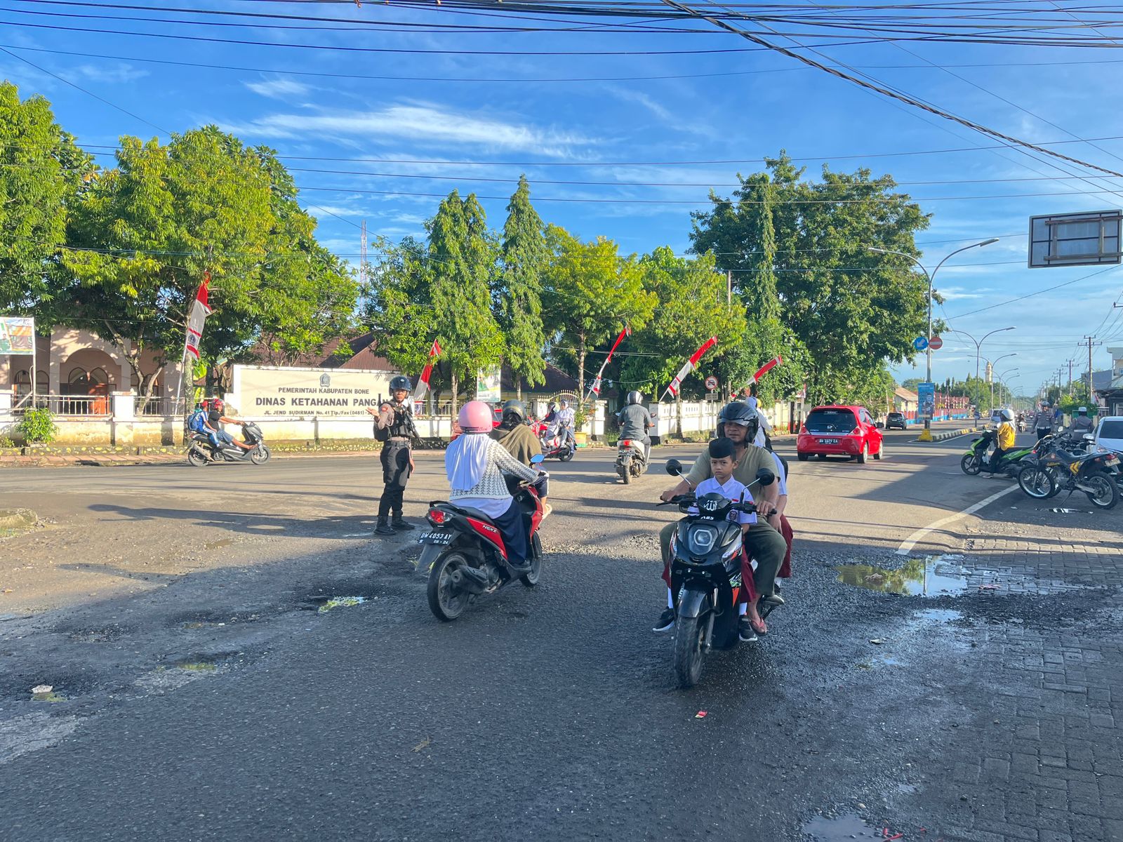 BONE – Personel Sat Samapta Polres Bone Polda Sulawesi Selatan laksanakan pengaturan pagi dan himbauan lalu lintas di Kota Watampone, Selasa (30/04/2024).