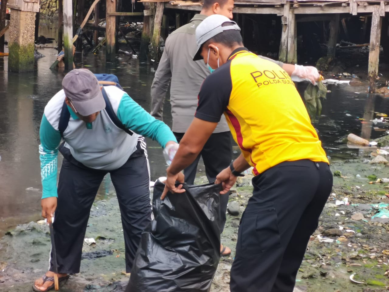 Ribuan warga berpartisipasi aktif dalam membersihkan area pesisir dan lingkungan sekitar, memunguti sampah organik dan non-organik yang dikumpulkan ke dalam kantong-kantong sampah yang telah disiapkan.