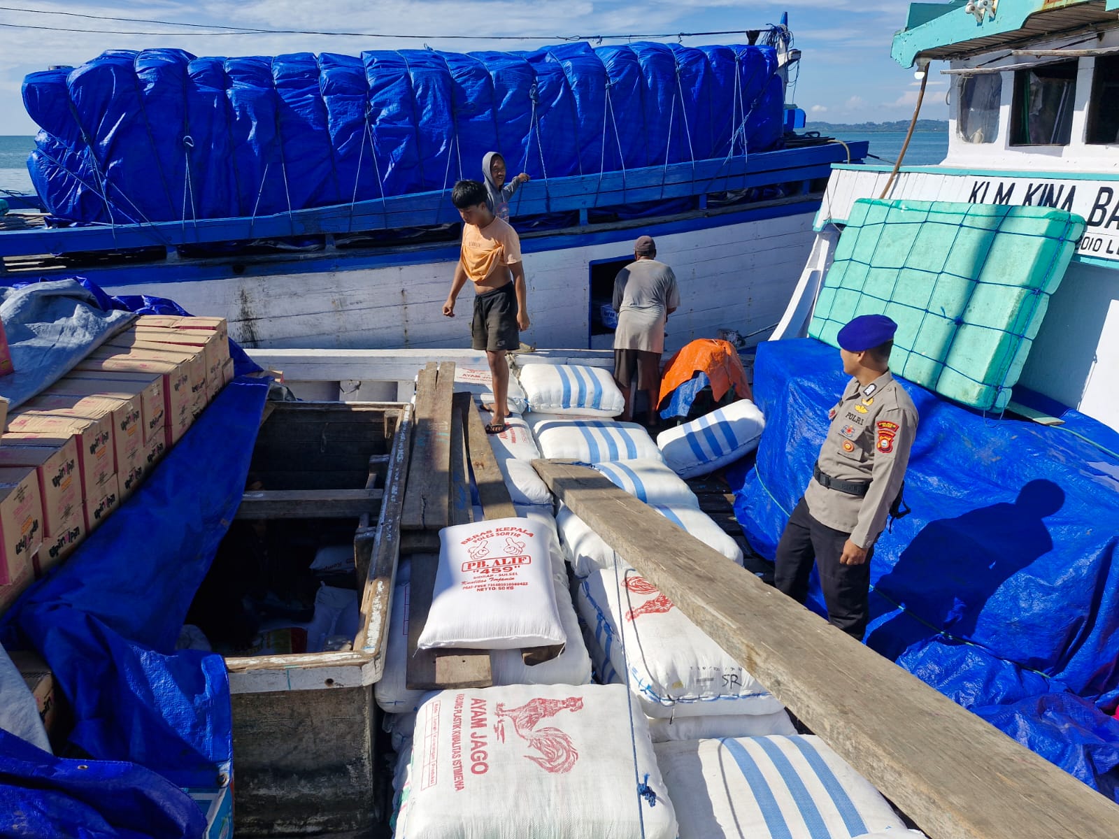BONE – Bajoe, Aparat Kepolisian dari Satpolairud Polres Bone terus meningkatkan kegiatan pemeriksaan kapal dengan mendatangi kapal-kapal yang sementara berlabu guna memantau aktivitas Nahkoda kapal dan anak buah kapal (ABK) yang melakukan aktivitas, Senin (26/05/2025) siang.
