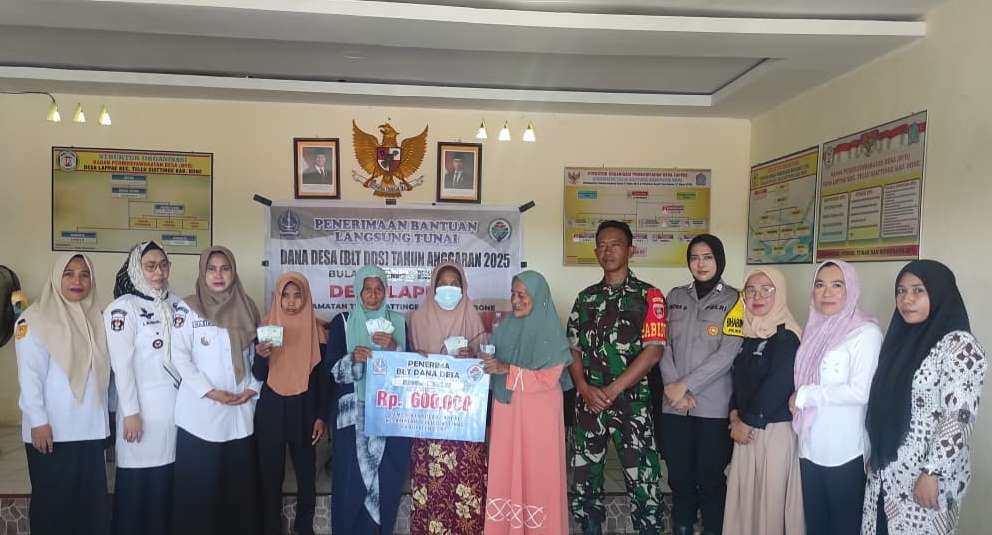 BONE – Tellu Siattinge,  Bertempat di Aula kantor Desa Lappae, Tellu Siattinge, Bone, Bhabinkamtibmas Polsek Tellu Siattinge Polres Bone Brigpol Citra Demmu menghadiri kegiatan penyaluran Bantuan Langsung Tunai (BLT).