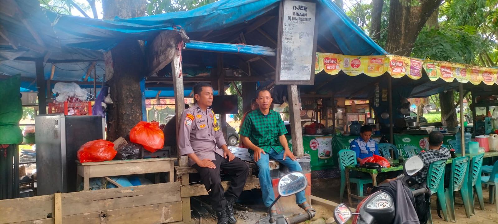 Perkuat Keamanan Lingkungan, Bhabinkamtibmas Sambangi Pos Satkamling Komunitas Ojek Cinta Damai