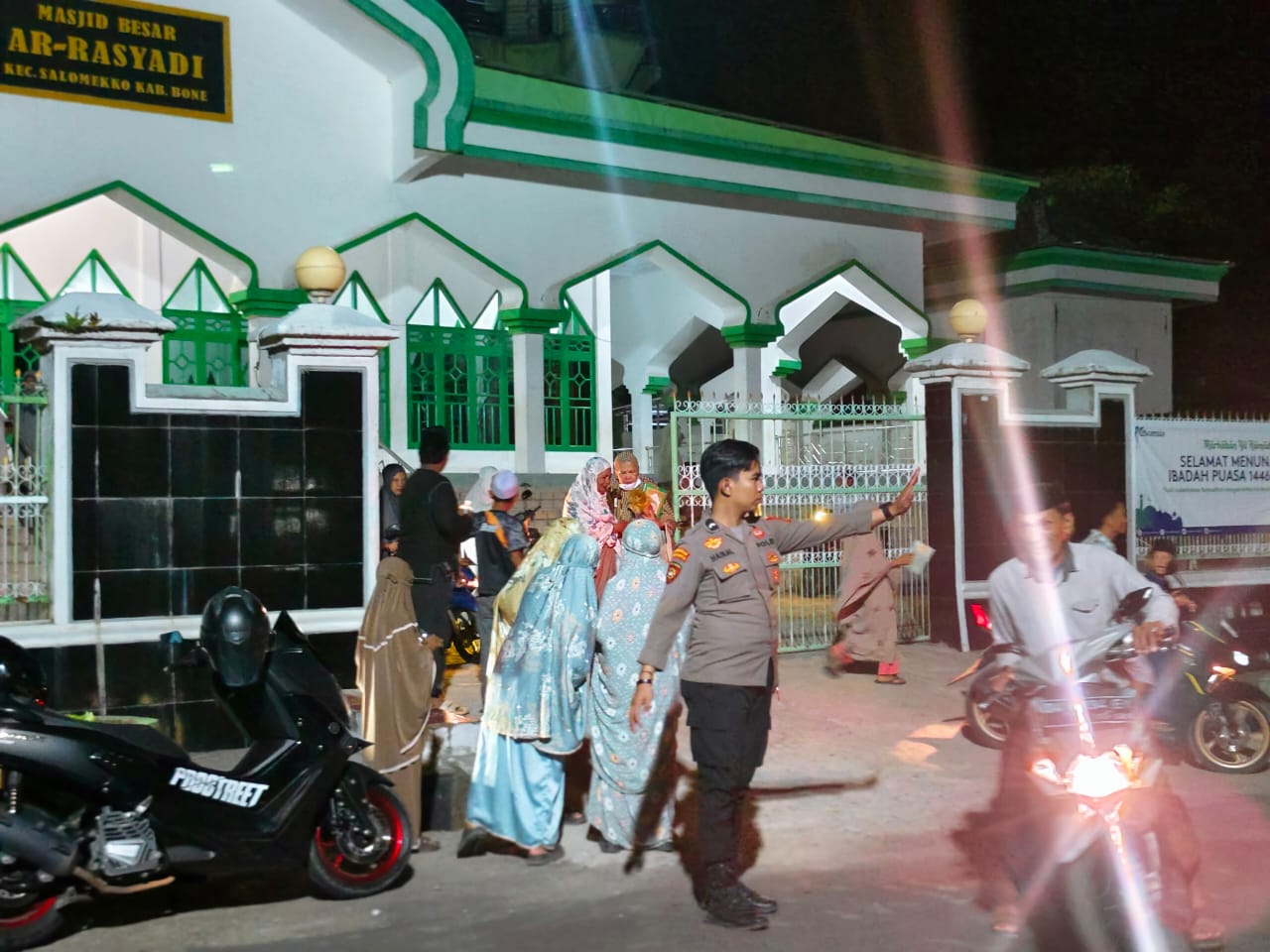 BONE – Dalam rangka memberikan rasa aman dan nyaman kepada masyarakat selama bulan suci Ramadan, tahun 1447 H/2026 M, anggota jaga Polsek Salomekko melaksanakan kegiatan pengamanan sholat tarawih di Masjid Besar Ar Rasyadi Kelurahan Pancaitana Kec.Salomekko, Kabupaten Bone, Selasa, 24 Februari 2026.