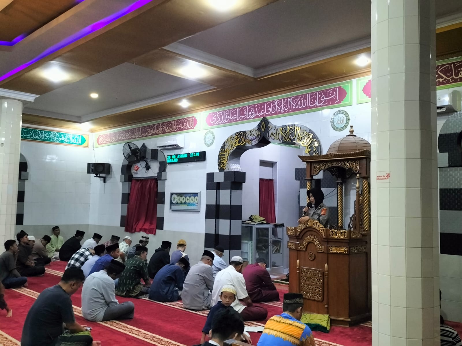 Kegiatan tersebut dilaksanakan usai shalat Isya berjamaah, sebagai bentuk kehadiran Polri di tengah masyarakat dalam rangka mempererat silaturahmi sekaligus memberikan pembinaan rohani kepada warga.
