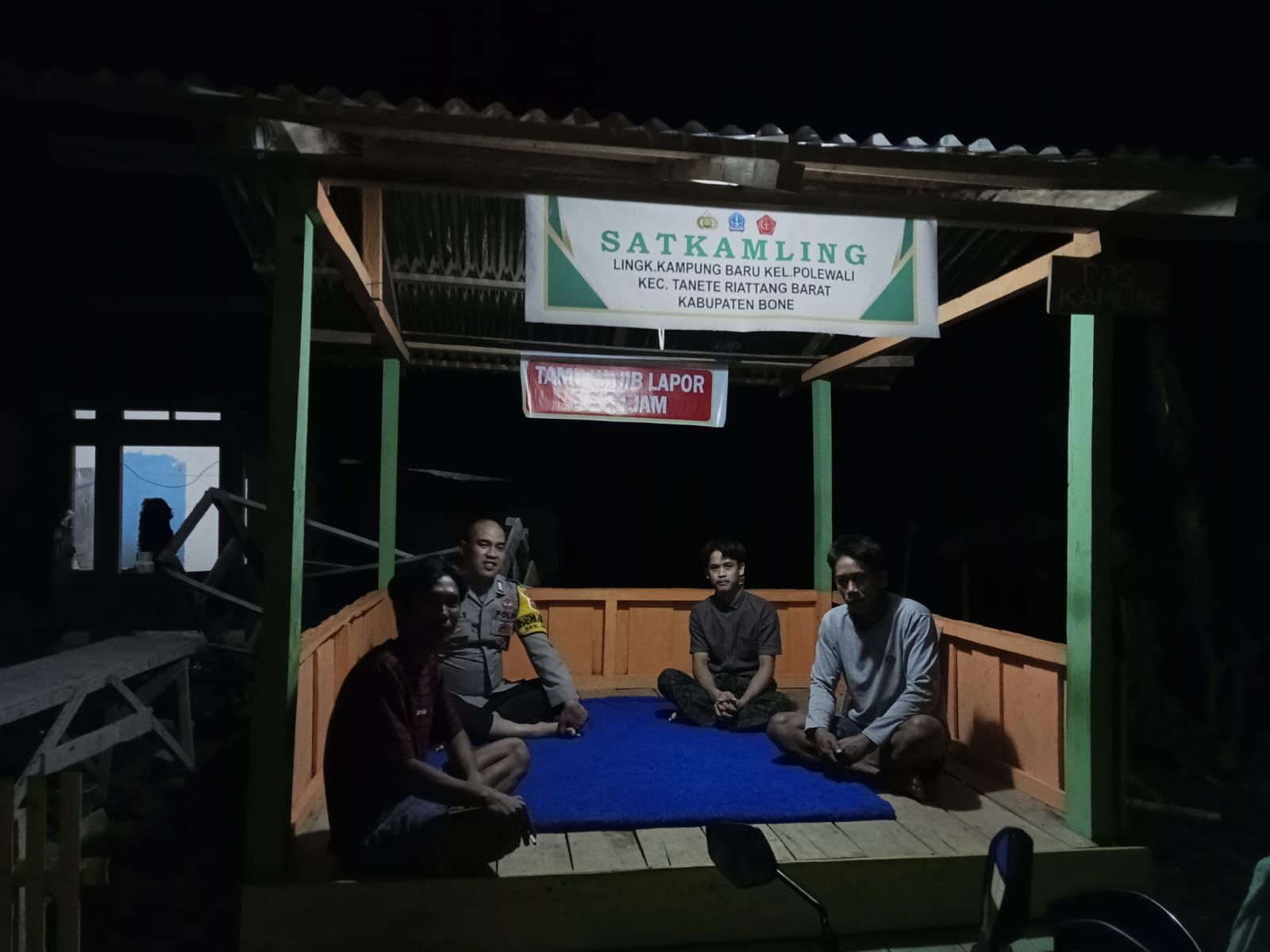 BONE – Manurunge, Dalam upaya menjaga keamanan dan ketertiban masyarakat, Bhabinkamtibmas Polsek Tanete Riattang Barat, Bripka Wiwin Susanto, melaksanakan kunjungan dan pembinaan Satuan Keamanan Lingkungan (Satkamling) di Lingkungan Kampung Baru, Kelurahan Polewali, Kecamatan Tanete Riattang Barat, Kabupaten Bone.”Jumat (13/3/2026)