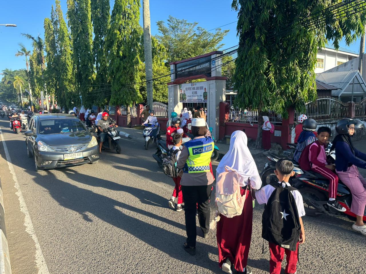 Personel dikerahkan di sejumlah titik persimpangan jalan, kawasan sekolah, serta pusat aktivitas masyarakat yang dinilai rawan kemacetan.