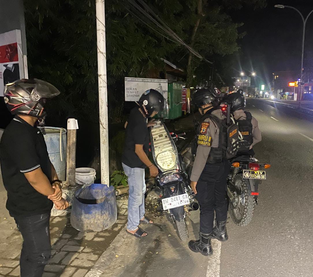 BONE – Dalam upaya untuk mengantisipasi balapan liar dan kejahatan pada malam hari di kota Watampone, sejumlah personil Sat Samapta Polres Bone laksankan patroli KRYD dan berikan himbauan kamtibmas ke masyarakat yang di temui, Upaya ini bertujuan untuk menjaga keamanan dan ketertiban di kota watampone, khususnya pada malam hari, Senin (13/04/2026) malam.