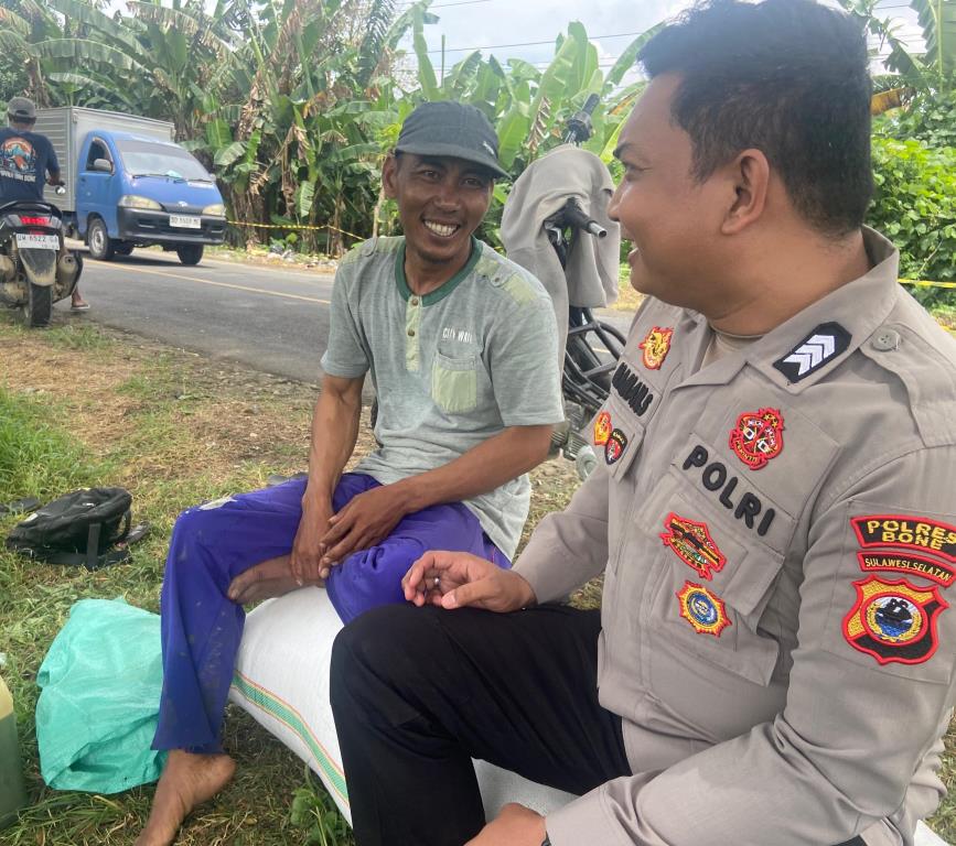 BONE – Tellu Siattinge, Bhabinkamtibmas Polsek Tellu Siattinge Brigpol Maman Suryaman, S.Sos.  melaksanakan kegiatan sambang rutin di desa binaannya. Kegiatan ini berlangsung di Desa Padaidi, Tellu Siattinge, Bone, pada hari Selasa (14/4).