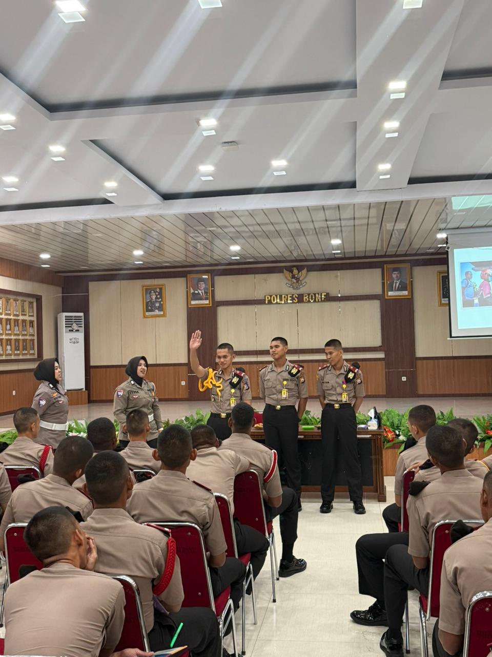 BONE – Guna menambah wawasan dan pengetahuan tentang lalu lintas, Satlantas Polres Bone memerikan materi tentang fungsi teknis lalu lintas kepada Siswa Diktuk Bintara Brimob 2026 yang sedang melaksanakan Latihan Kerja di Polres Bone, Senin (27/4/2026).