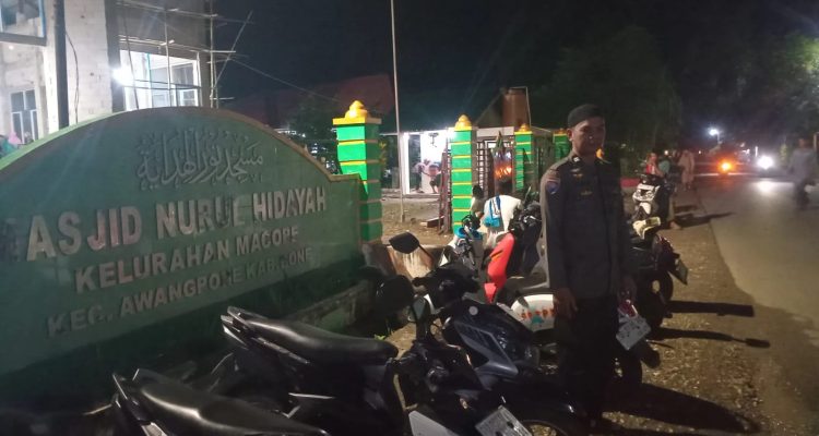 Polsek Awangpone Pengamanan Shalat Isya dan Tarawih di Masjid Nurul Hidayah Kelurahan Macope BREAKING NEWS|24/02/2026oleh editor BONE – Pada hari Senin, 23 Februari 2026, pukul 19.50 Wita, personel